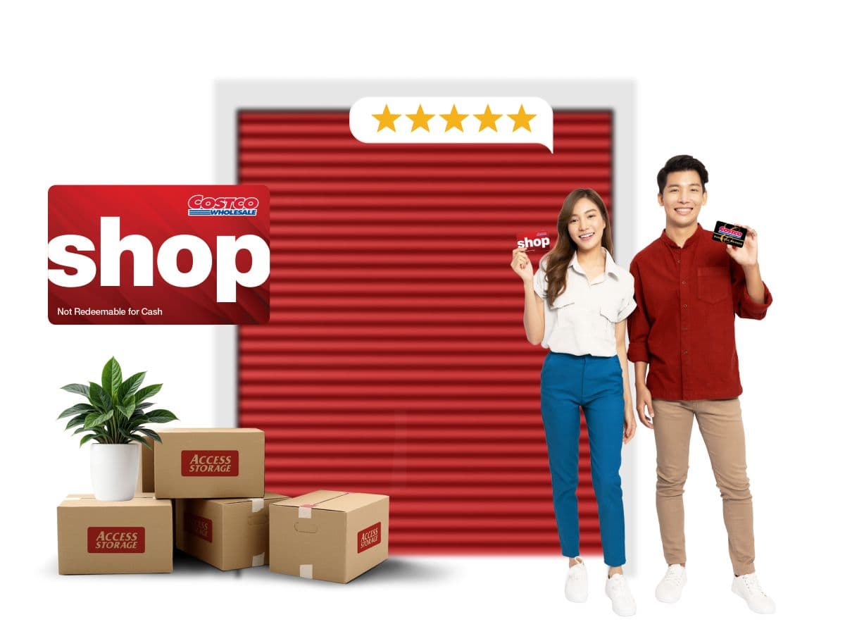 *Through this exclusive program, in addition to current move-in specials, Costco members receive Digital Costco Shop Cards, the value of which is based on the size of the storage unit and length of the rental.