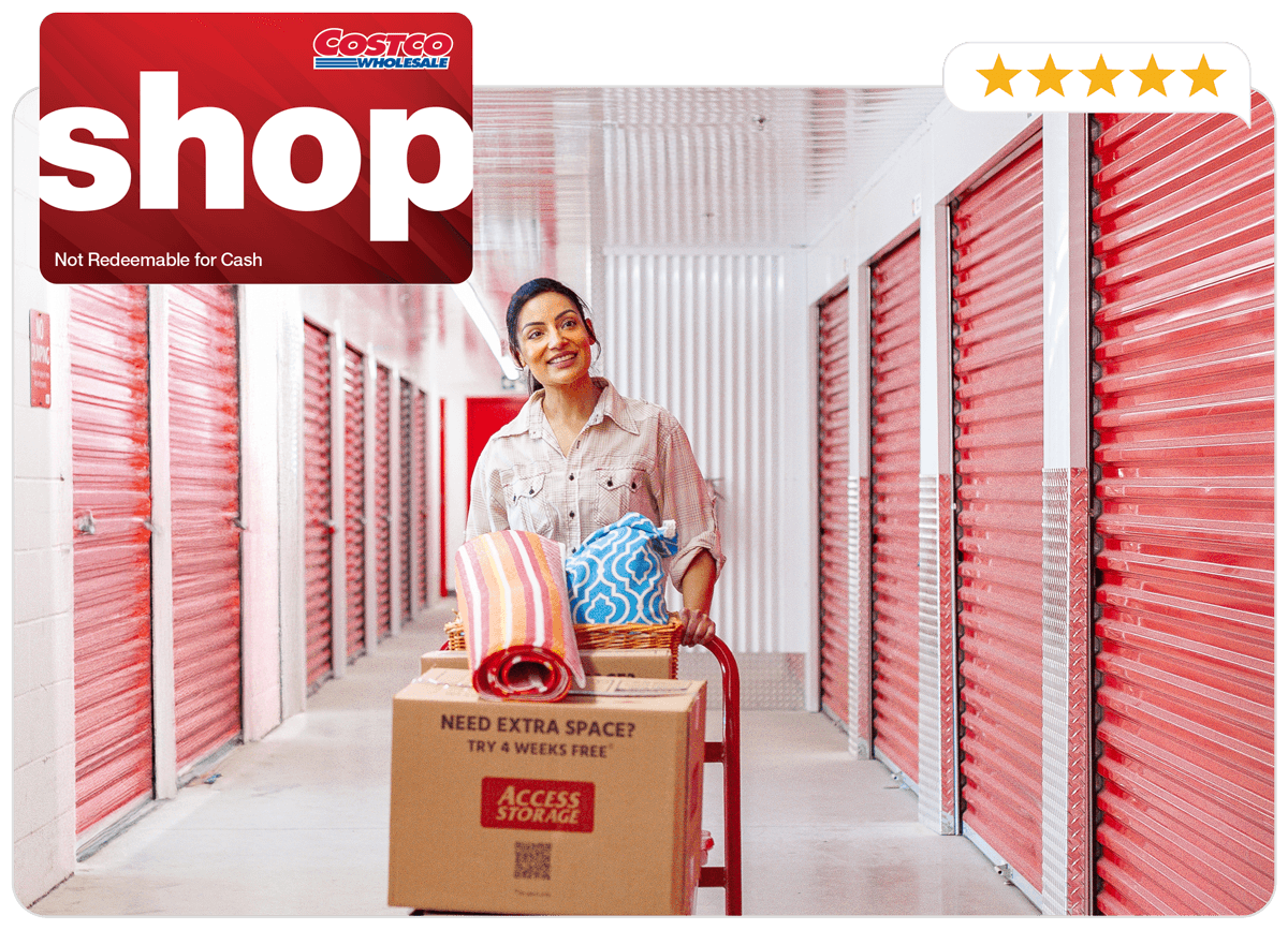 *Grâce à ce programme exclusif, en plus des offres en cours pour les emménagements, les membres de Costco recevront des cartes Achat numériques de Costco, dont la valeur est établie en fonction de la taille de l’unité d’entreposage et la durée de la location.